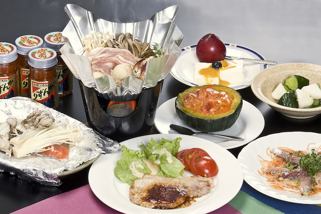 - ご夕食は杉野沢名物かんずり鍋または秀雲荘特製辛みその陶板焼き付になります